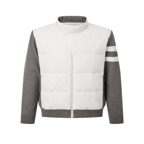 헤지스 골프 화이트 남성 니트 하이브리드 풀집 구스다운 점퍼 (HUSW4D772OW)