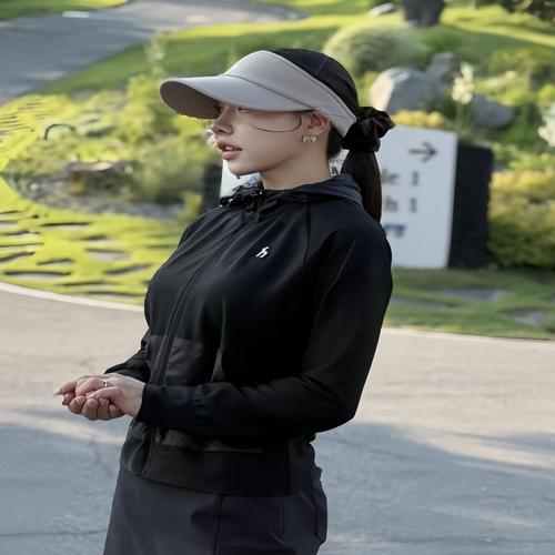 헤지스 골프 여성 블랙 여성 스트라이프 집업 티셔츠 (HWTS5B471BK)