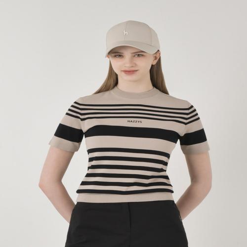 헤지스 골프 여성 [ONLINE EXCLUSIVE] 베이지 여성 스트라이프 반팔 니트 (HWSW5B902I1)
