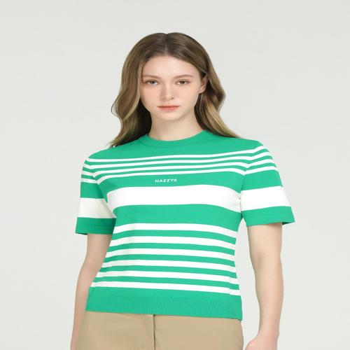 25SS [ONLINE EXCLUSIVE] 그린 여성 스트라이프 반팔 니트 HWSW5B902E2