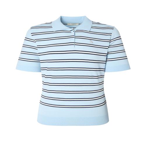 헤지스 골프 여성 블루 여성 멀티 스트라이프 반팔 카라 스웨터 (HWSW5C513B1)