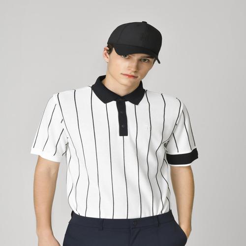 헤지스 골프 화이트 남성 핀스트라이프 반팔 카라 니트 (HUSW5C511OW)