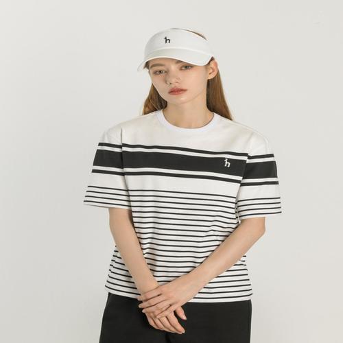 헤지스 골프 여성 [ONLINE EXCLUSIVE] 블랙 여성 스트라이프 반팔 티셔츠 (HWTS5B901BK)