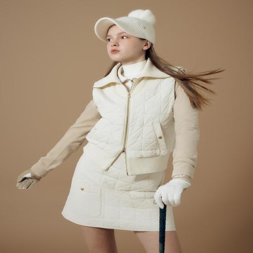 헤지스 골프 여성 크림 여성 퀼팅 패딩 밴딩스커트 (HWSK4D712CR)