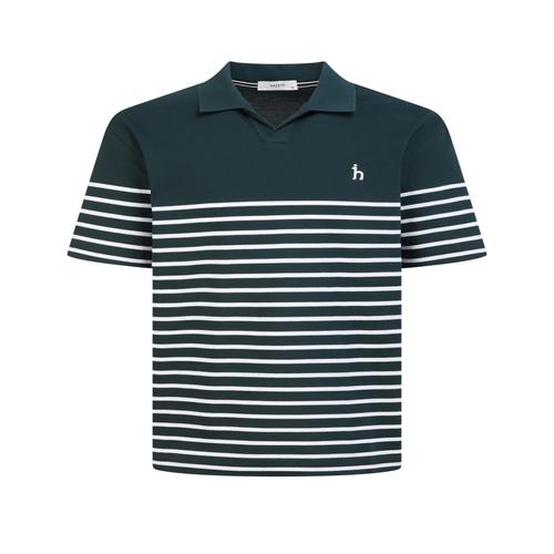 헤지스 남성 그린 스트라이프배색 면 반팔카라티셔츠 (WHTS5B410E2)