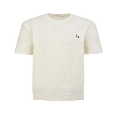 헤지스 남성 크림 체크 면혼방 반팔니트 (WHSW5B563CR)