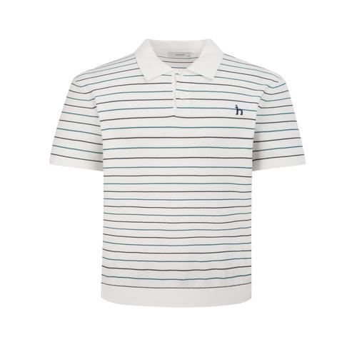 헤지스 남성 [스테디셀러] 아이보리 스트라이프 면 반팔카라니트 (WHSW5B564IV)