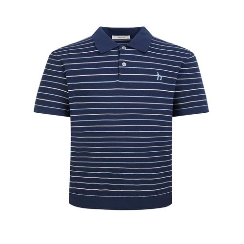 헤지스 남성 [스테디셀러] 네이비 스트라이프 면 반팔카라니트 (WHSW5B564N2)