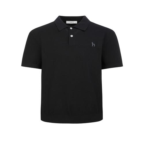 헤지스 남성 [스테디셀러] 블랙 단색 면 반팔카라니트 (WHSW5B550BK)