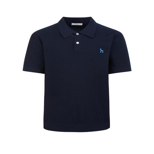 헤지스 남성 [스테디셀러] 네이비 단색 면 반팔카라니트 (WHSW5B550N2)