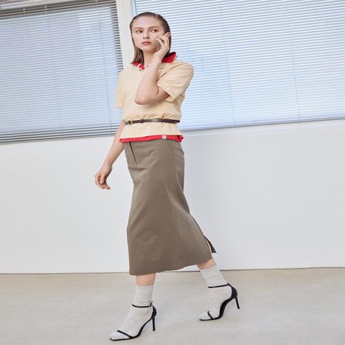 헤지스 여성 H라인 치노 스커트 다크카키 (HSSK5BP71K3)