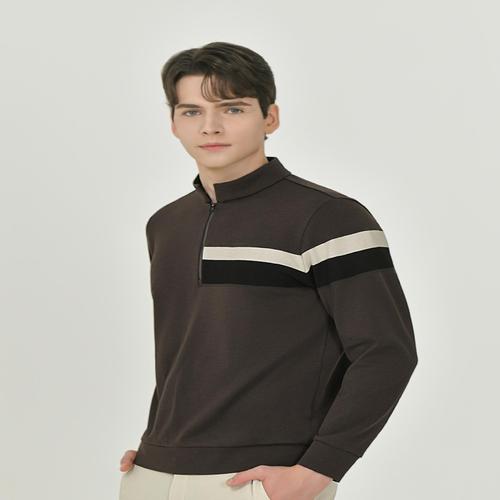 헤지스 골프 브라운 남성 니트 패치 쿼터집업 티셔츠 (HUTS5D714W3)
