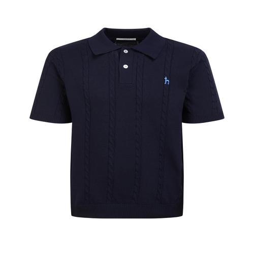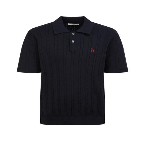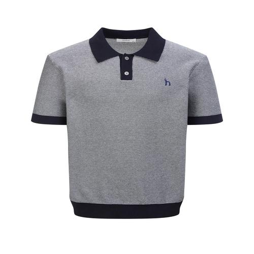 헤지스 남성 [스테디셀러] 네이비 짜임 면 반팔카라니트 (WHSW5B558N2)