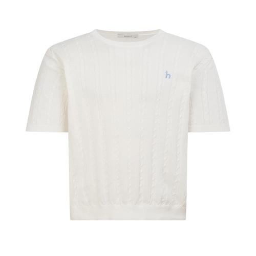 헤지스 남성 [스테디셀러] 아이보리 짜임 면혼방 반팔 니트 (WHSW5B559IV)
