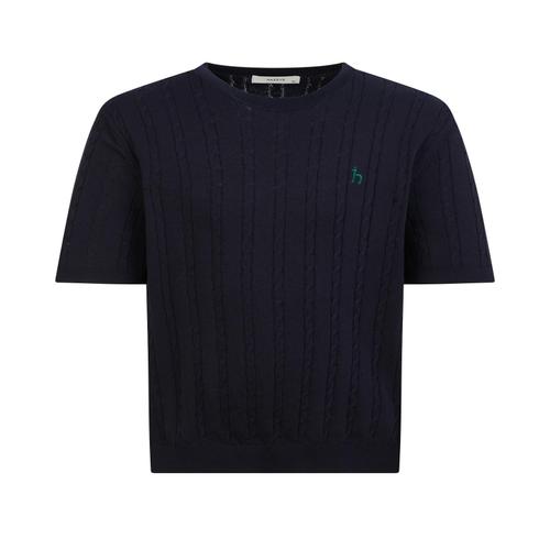 헤지스 남성 [스테디셀러] 네이비 짜임 면혼방 반팔 니트 (WHSW5B559N2)