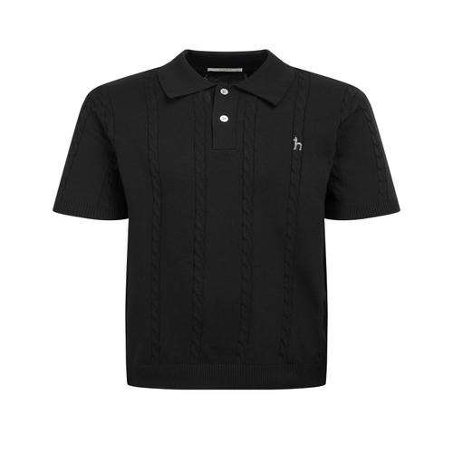 헤지스 남성 [스테디셀러] 블랙 짜임 면혼방 반팔카라니트 (WHSW5B551BK)