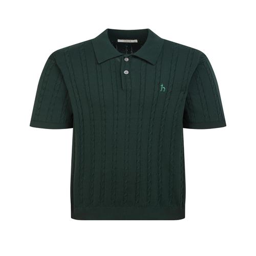 헤지스 남성 그린 짜임 면혼방 반팔카라니트 (WHSW5B553E3)