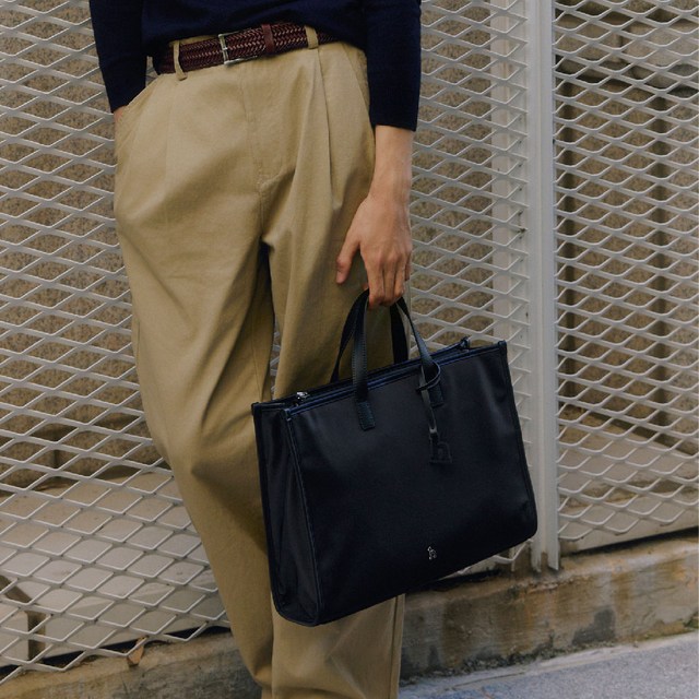 애프터마켓 남성 가죽 서류가방 수납 헤지스 출근 천연소 로고배색 단색 회사원 출근용