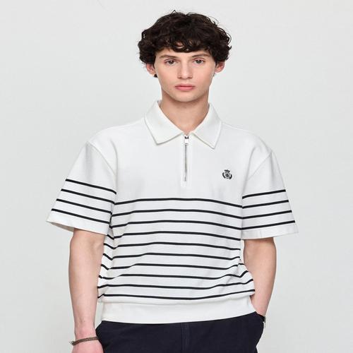 헤지스 남성 [스테디셀러] 화이트 스트라이프 면혼방 반팔반집업티셔츠 (WHTS5B608WT)