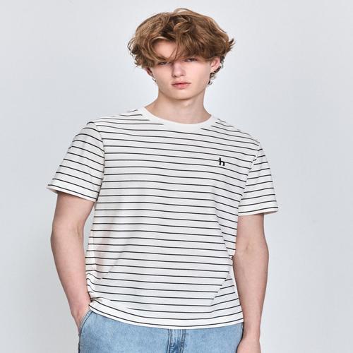 헤지스 남성 [시즌오프][AIRY TWILL] 화이트 트윌조직 스트라이프 반팔 티셔츠 (HZTS5B505OW)