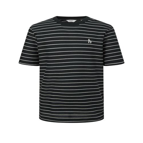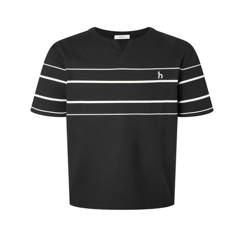헤지스 남성 블랙 스트라이프배색 면혼방 반팔티셔츠 (WHTS5B547BK)