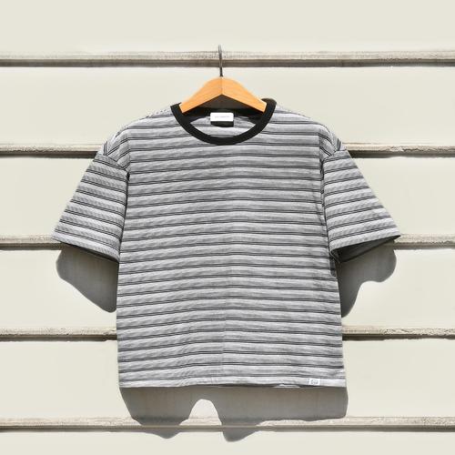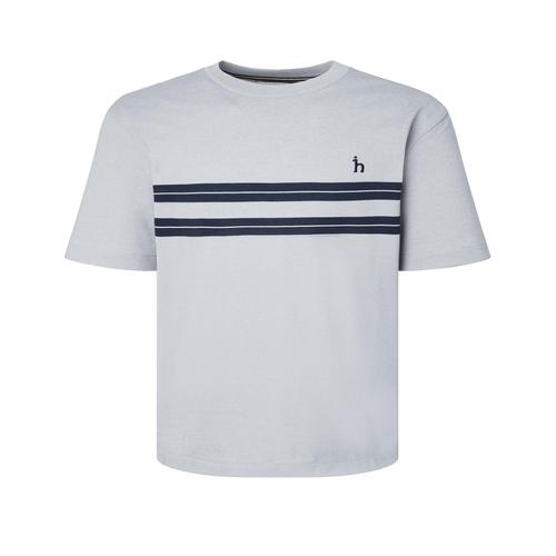 헤지스 남성 [스테디셀러] 그레이 스트라이프배색 면혼방 반팔티셔츠 (WHTS5B548G2)