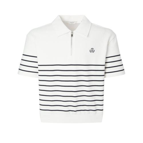 헤지스 여성 24FW 면 버건디 스트라이프 반소매 카라 스웨트 HSSW4DL71D2