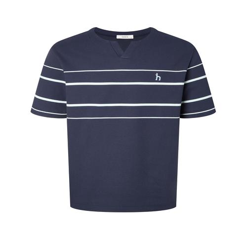 헤지스 남성 네이비 스트라이프 면 반팔티셔츠 (WHTS5B324N3)