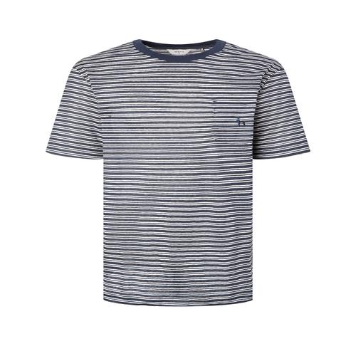 헤지스 남성 네이비 스트라이프 린넨 반팔티셔츠 (WHTS5B508N2)