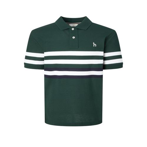 헤지스 남성 [SOFT COTTON] 그린 스트라이프 반팔 카라 티셔츠 (HZTS5B435E3)