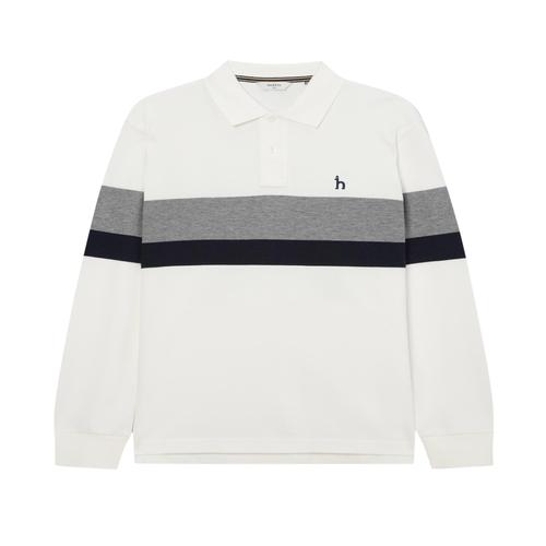 헤지스 남성 화이트 컬러블럭 카라 티셔츠 (HZTS4D532OW)