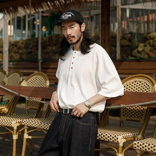 [피팅남]남자 릭드 오버핏 여름 헨리넥 차이나 반팔티