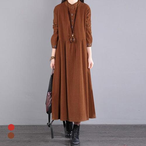 [미라클세븐][M7] 여자 코듀로이 가을겨울 헨리넥 롱원피스