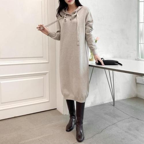 [옷자락]여성 스웨터 헨리넥 집앞룩 FW 후드맨투맨 롱원피스