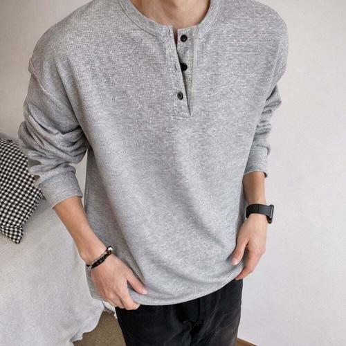 [모로엠]남성 루즈핏 헨리넥 와플 긴팔 티셔츠 ON-TSA-QWFN0XNM