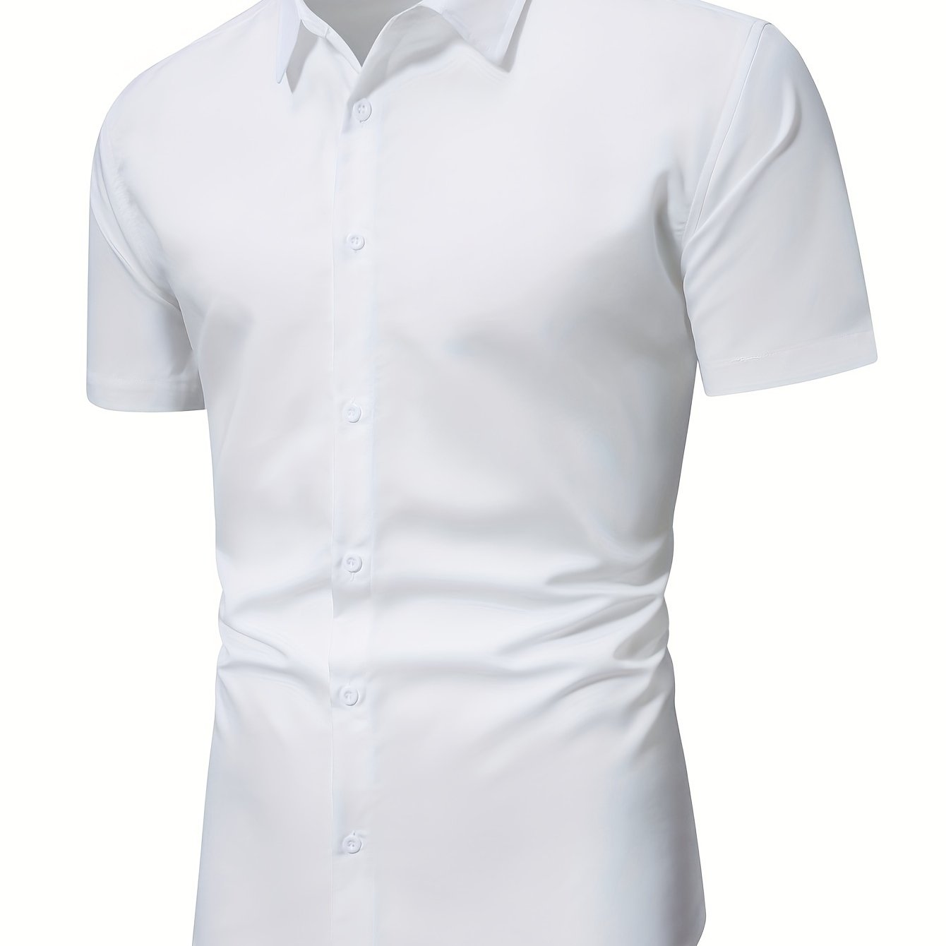 TEMU 남성용 슬림핏 캐주얼 버튼업 셔츠 - 반팔, 솔리드 블랙, 가벼운 여름 착용, 세탁기 사용 가능, 클래식 칼라 디자인, 여름 캐주얼웨어 | 슬림 핏 셔츠 | 매끄러운 질감의 셔츠