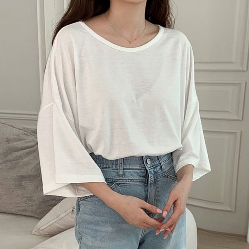 H스타일(US)찰랑티 여성 봄티셔츠 7부티 루즈핏 롱티 간절기