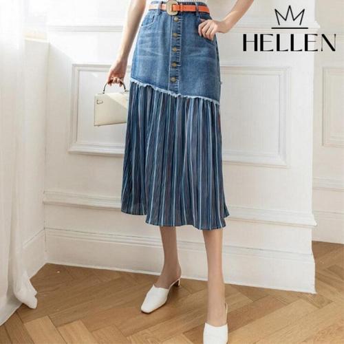 [헬렌]헬렌 유니크 플리츠 데님 청 치마 로타데님치마 H-685