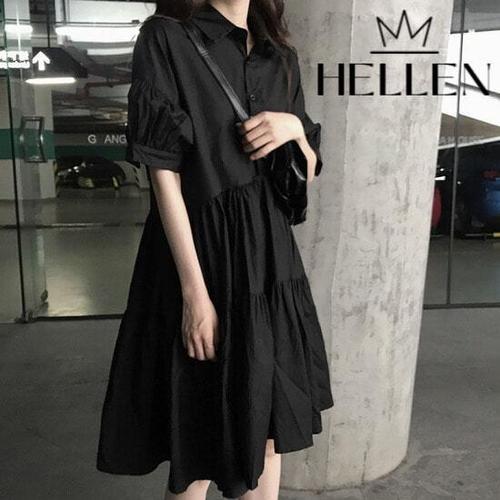 [헬렌]헬렌 단추 카라 반소매 셔츠 원피스 케즈카라원피스 G