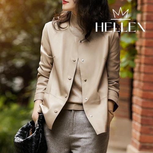 [헬렌]헬렌 페미닌 페이크레더 가죽 레더 자켓 라운드가죽자