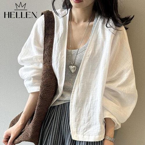 [헬렌]헬렌 여름 살안타템 코튼 노카라 아우터 자켓 씬오픈