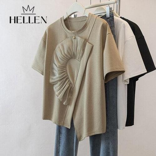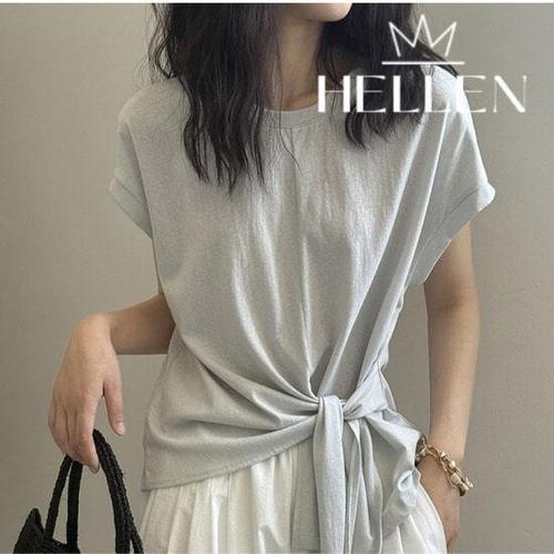 [헬렌]헬렌 유니크 언발란스 트임 라운드 반팔티 모이트반팔