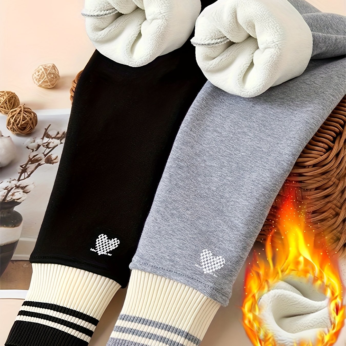 TEMU 2개 여아용 보온 레깅스 - 겨울 따뜻함, 하트 컷아웃 스트레치 타이츠, / & - 야외 활동, 헬스장에 적합, 두꺼운 여아용 보온 레깅스, 짐웨어, 신축성 있는 원단, 야외용|짐웨어
