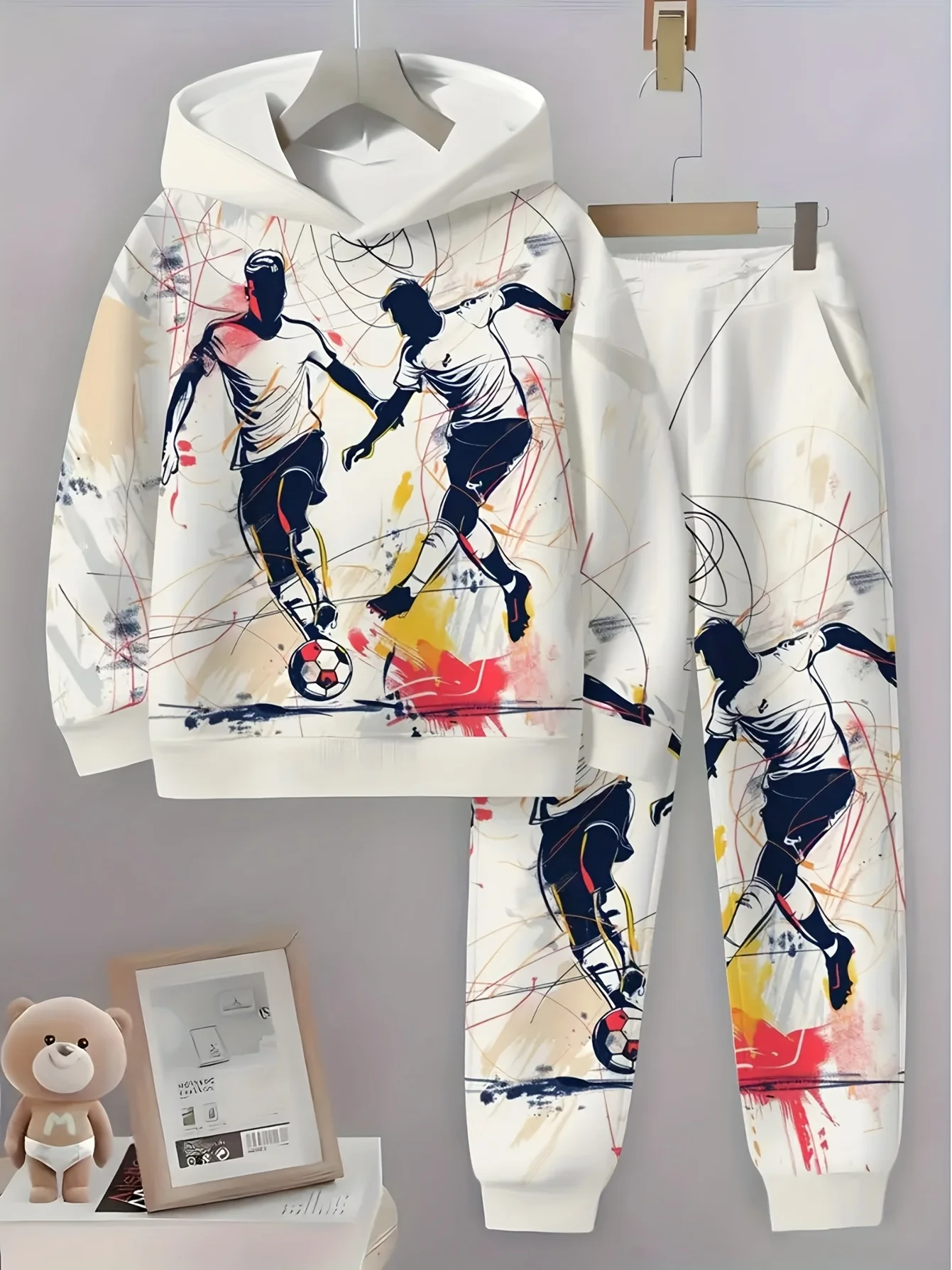 축구 3D 프린트 수트 스웨트셔츠 숲 속 호랑이 프린트 캐주얼 후드티 + 드로스트링 캐주얼 바지 2피스 세트 남녀 후드티 수트