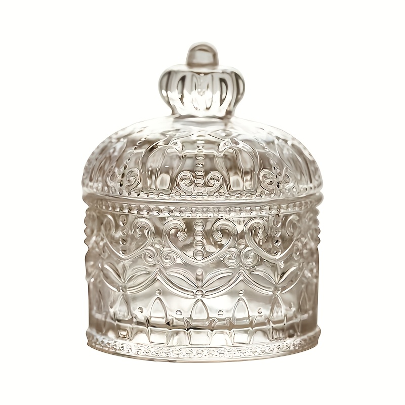 TEMU 1개 우아한 플립 커버 유리 보관함 - 장식용 무취 보석, 기념품 유리 병 및 액세서리 보관용, 복잡한 디자인으로 홈 데코 또는 선물용 보석함