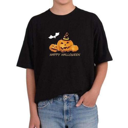 [에이치플러스몰]길단 반팔 USA핏 할로윈데이 파티 호박등 호박가면 공포HAPPY그림 다양한색상 전사이즈