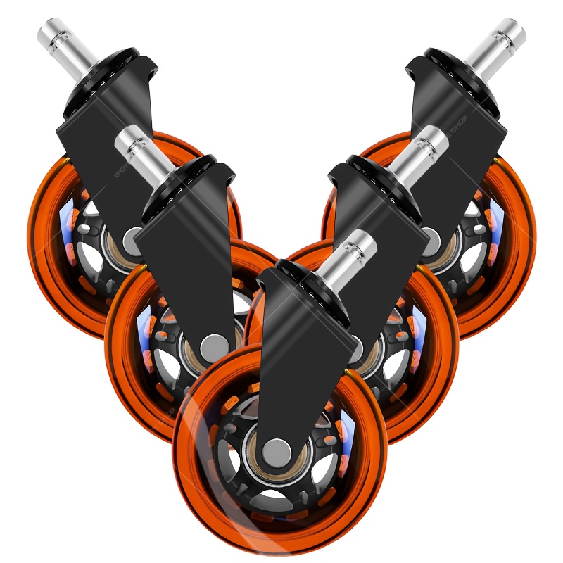 TEMU 360° 회전 기능이 있는 5개입 헤비듀티 조용 스위블 캐스터 - 오렌지 PU 휠, 스크래치 방지, 무소음, 하드우드/타일/바닥에 적합, 사무용 의자, 게이밍 의자, 카트, 가구용 (상업용 및 가정용) 쉬운 무료 설치