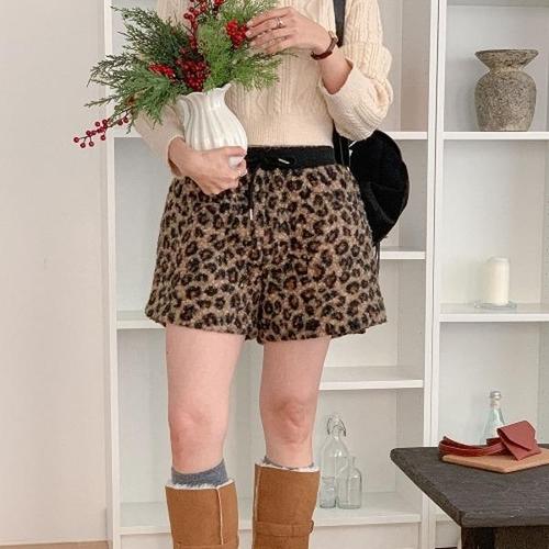 [다잇템_패션]여자 와이드핏 고무줄 호피 FW 양털쇼츠 반바지