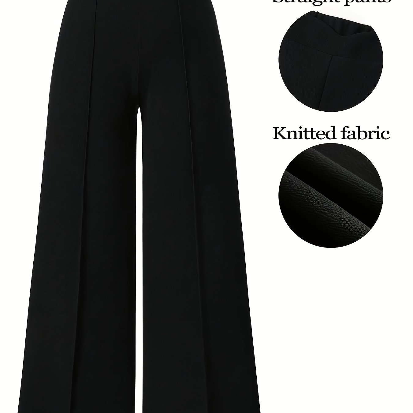 TEMU 캐주얼 캐주얼 의상| 우아한 여성용 와이드 레그 팬츠, 신축성 있는 허리밴드 - 통기성 폴리에스터 혼방, 세탁기 사용 가능, 단색, 사계절용 편안함, 플러스 사이즈 가능