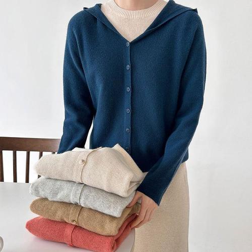 여자 후드가디건 골지 울니트 홀가 가디건_3